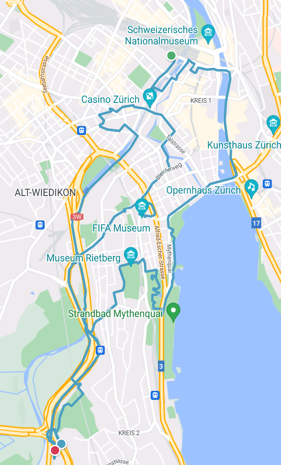 Auf dem Weg zurück finde ich oft, dass Zürich durch die vielen Wassergassen ein wenig Venedig ähnelt – aber spannenderweise auch ein wenig Graz, da die Böschungen der Flüsse genauso bewachsen sind wie bei uns. Vor allem die Sihl selbst erinnert mich an die Mur.