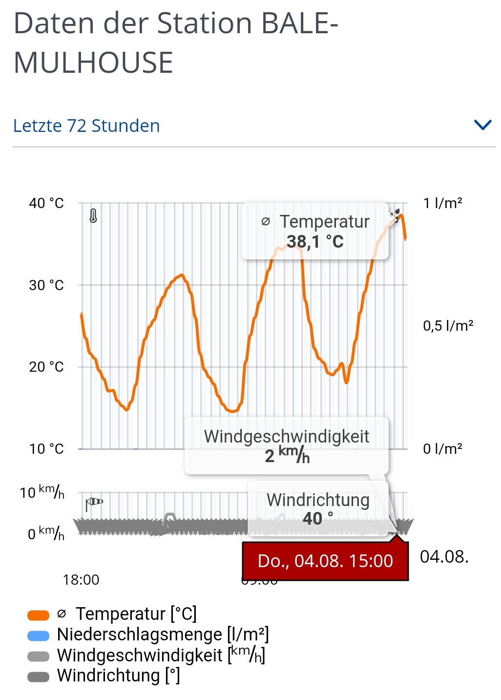 In gewisser Weise habe ich ja Glück. Das Wetter ist wunderschön. Dass es allerdings in Basel, wo die durchschnittliche Monatshöchsttemperatur im August bei ca 25° liegt, 38° hat, hat mich heute dazu gebracht, einen Ruhigen Pausetag einzulegen – viel Essen, wenig Bewegung – yesss!