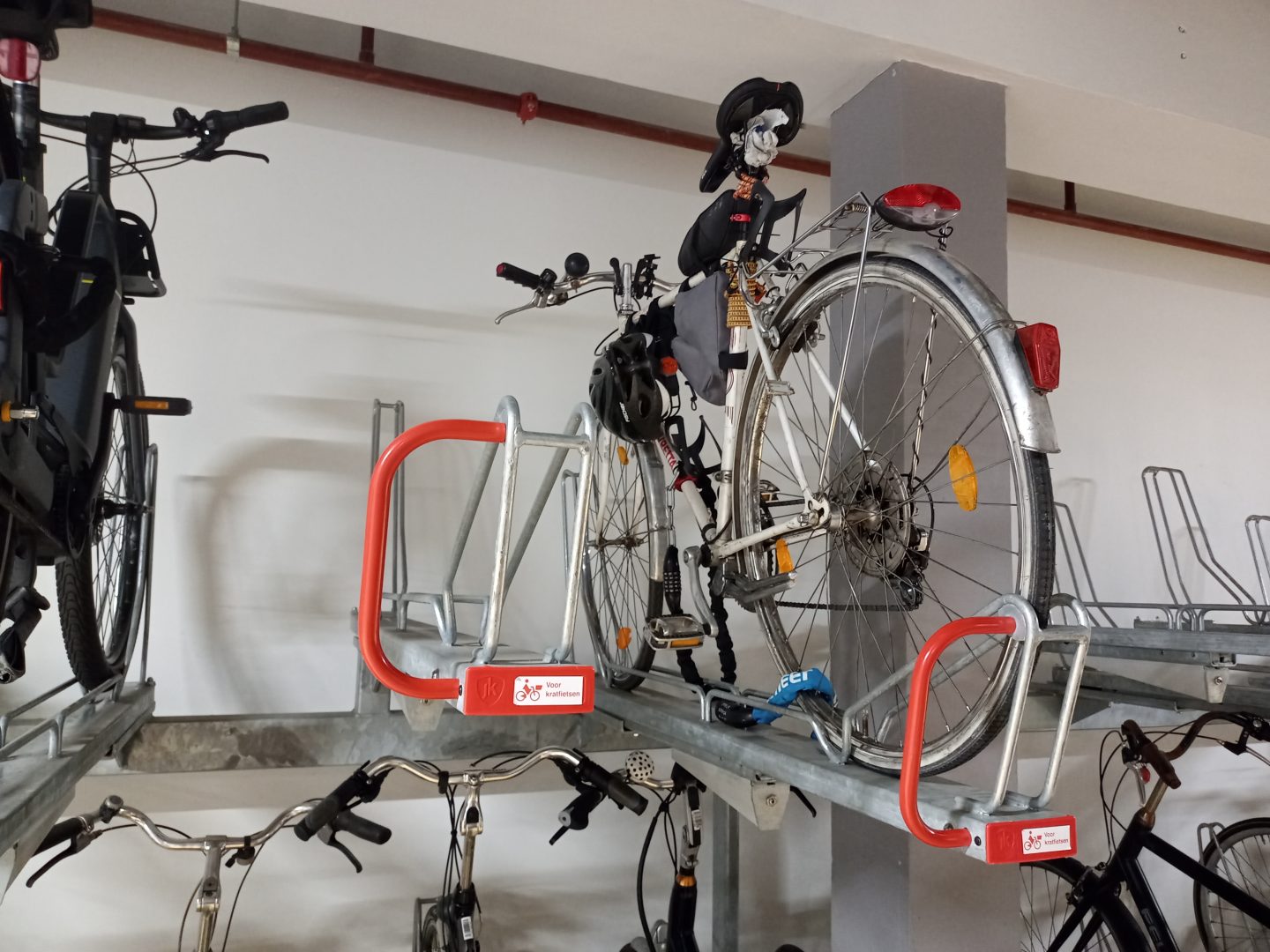 Von meinem Begleiter nach Utrecht bekomme ich noch den Tipp, das Fahrrad in einer 24h kostenlosen Fahrradgarage unterzustellen – egal wo in den Niederlanden, es werden unglaublich viele Räder geklaut. Also überlasse ich mein Rad dem Sicherheitsdienst. Gute Nacht!