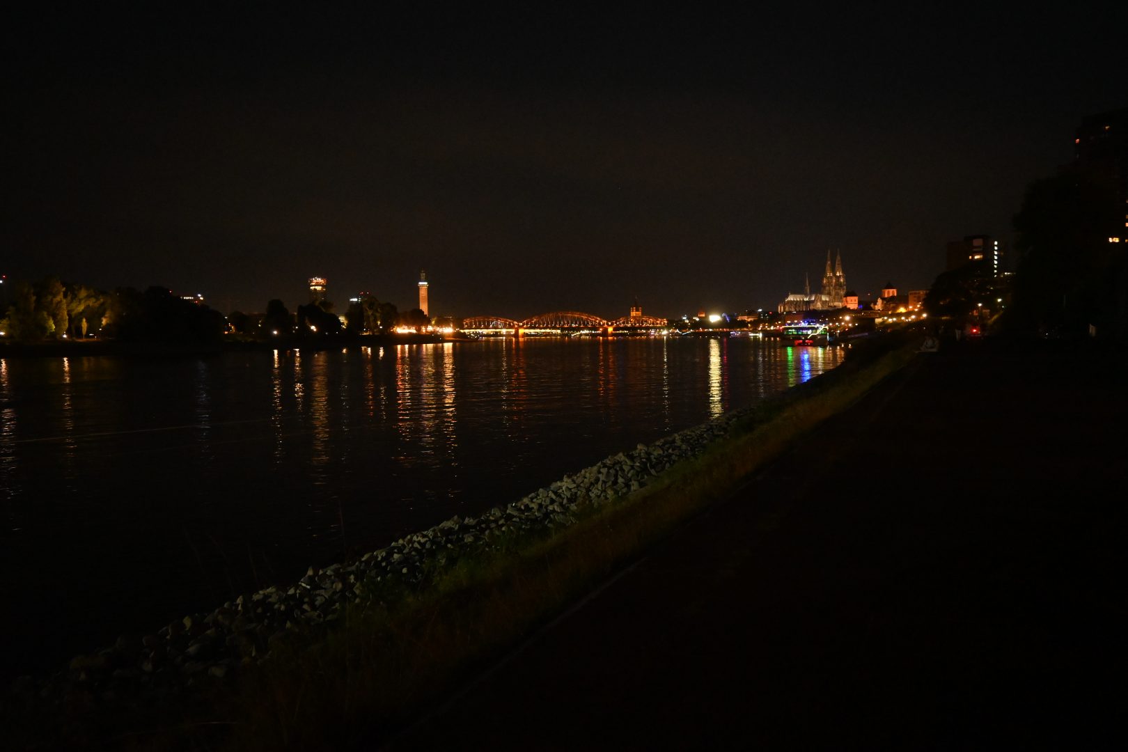 Der Abend endet mit einer großen Jause am Rhein mit einem früh Kölsch (geschaut, was die alle so trinken und kopiert 😉 ). Was ich dabei in einem Gespräch mit einem Einheimischen gelernt habe: die Flaschen lässt man für die Sammler stehen.