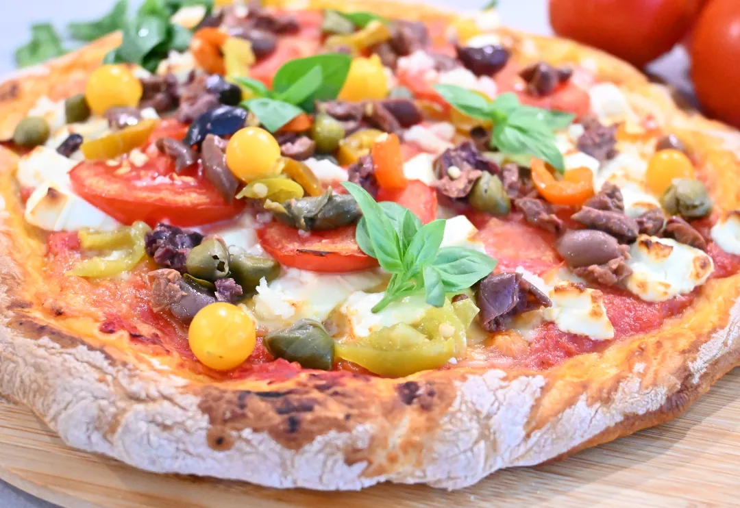 Frisches und Fleisch erst nach dem Backen auf die Pizza geben.