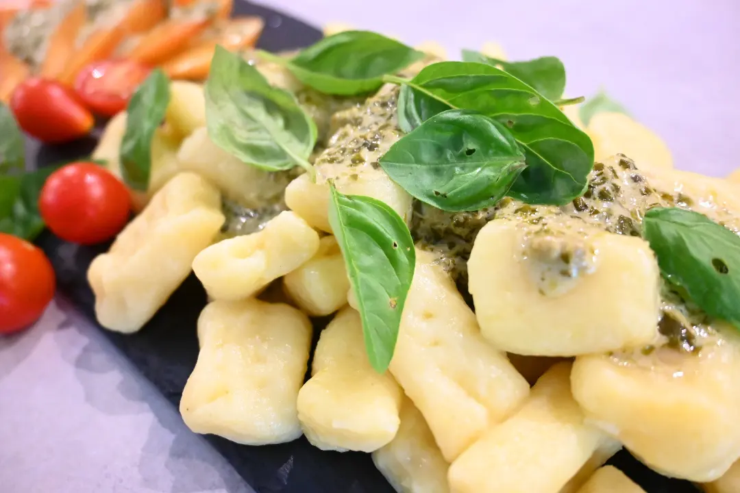 Konsistenz: der Teig sollte mit dem Mehl zum Ausformen nicht mehr an den Händen kleben, ohne dem Mehl ein bisschen – locker und zart.