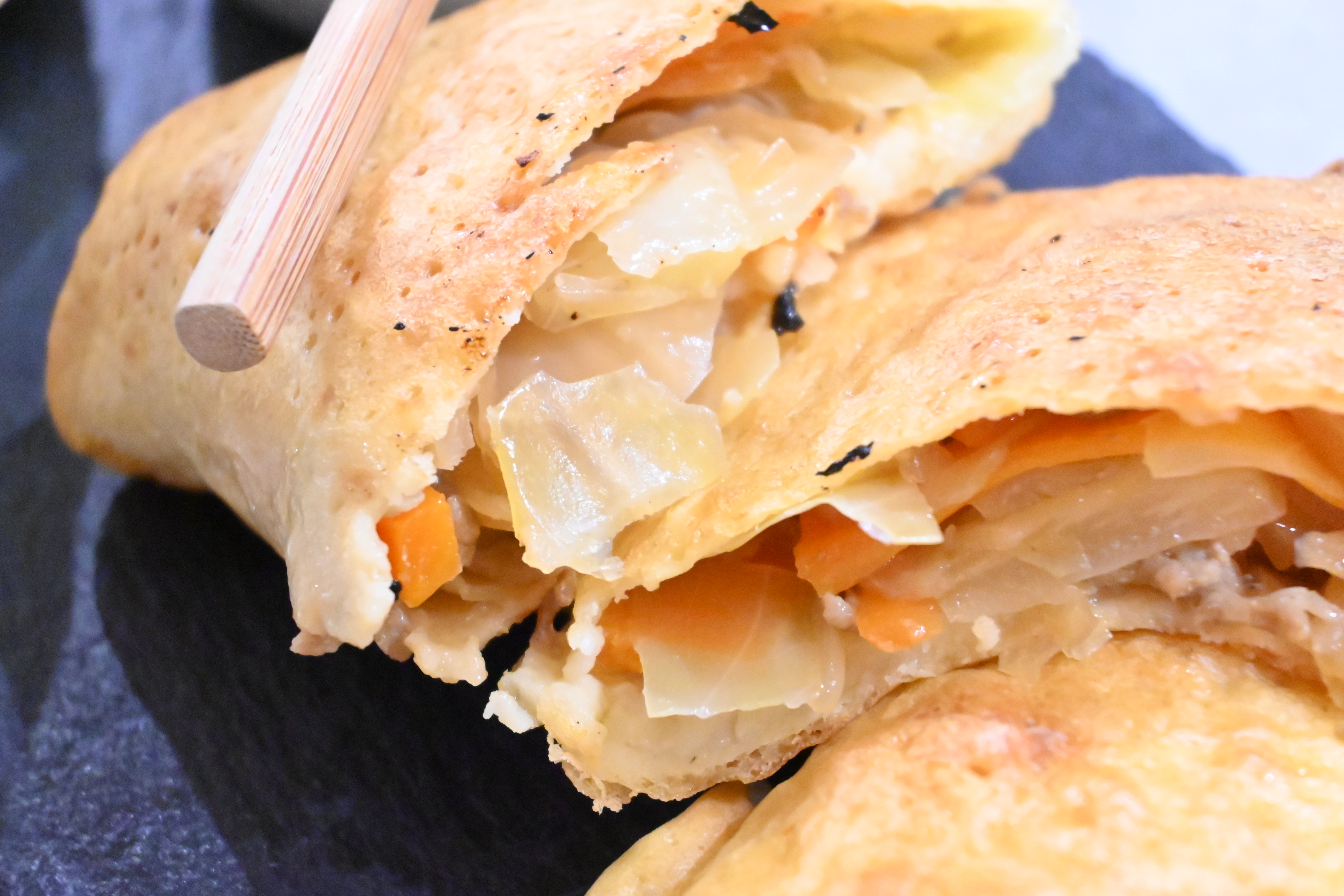 Fülle in Teigblätter geben