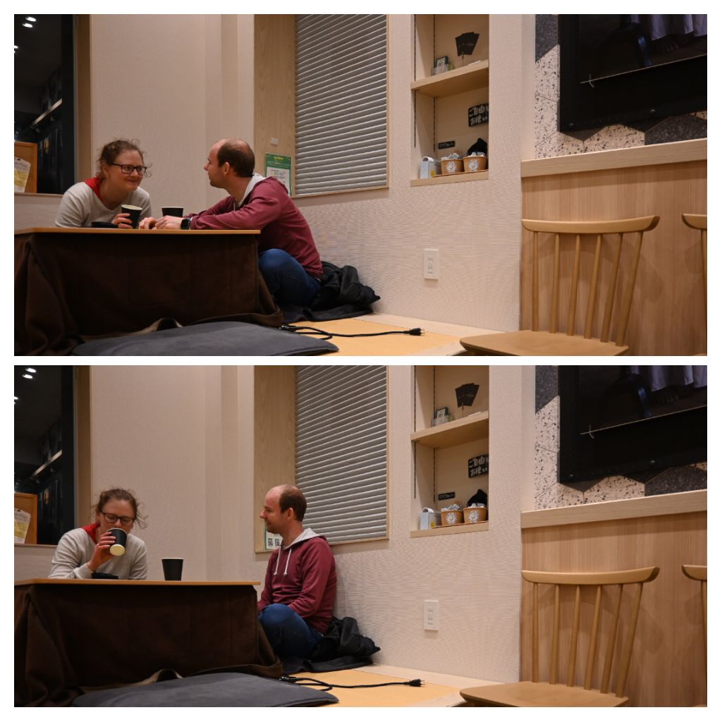 Hier finden wir ein cooles Lokal – wir beide haben, nachdem wir uns die letzten drei Tage aufgrund eines kulinarischen Kulturschocks von Pizza und Sandwiches ernährt haben, endlich wieder mal Lust auf etwas Neues und Japanisches. Nach 5 Portionen Gyoza, frittierten Nudeln und Ramen sowie einheimischem Bier sind wir dann satt und glücklich. Beim Verdauungsspaziergang finden wir wieder mal einen Eiffelturm-Nachbau (der erste war in Sapporo). Waren die im Sonderangebot? Wenigstens gibt’s hier rundherum französische Cafés, Restaurants und Graffiti. 😉 In einer Bibliothek mit lauter Büchern, die wir absolut nicht entziffern können, haben wir dann noch traditionell auf Tatamimatten Matcha latte und Hojicha latte genossen.Finally, wieder ein bisschen Blödsinn… … wären ja sonst nicht wir.