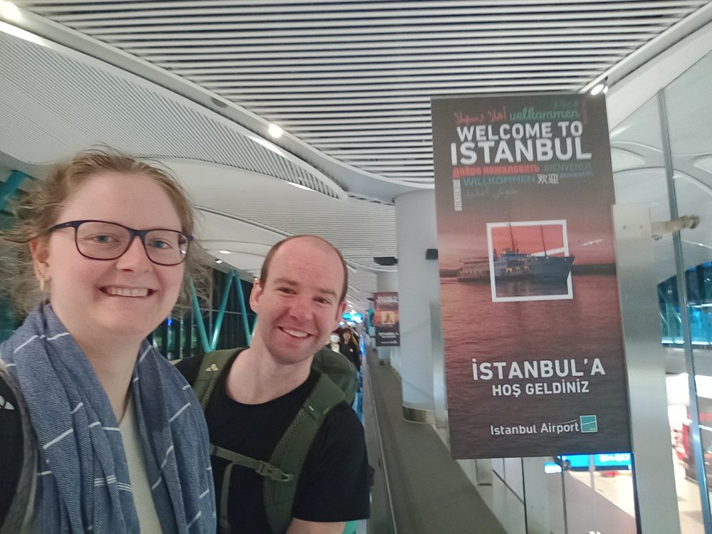 Bei diesem 13 Stunden Flug von 22 Uhr Abends weg geht nie die Sonne auf. Wir schlafen ein bisschen (schlecht) und sind dann um 11 Uhr japanische Zeit, 5 Uhr Ortszeit in Istanbul. Hier geht bei frisch gepresstem Orangensaft die Sonne auf.