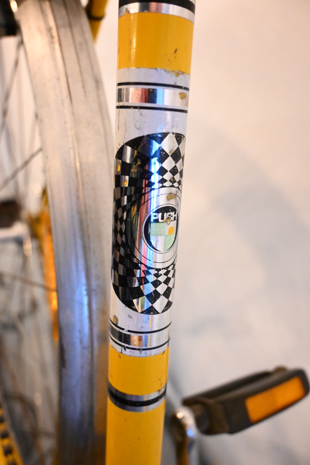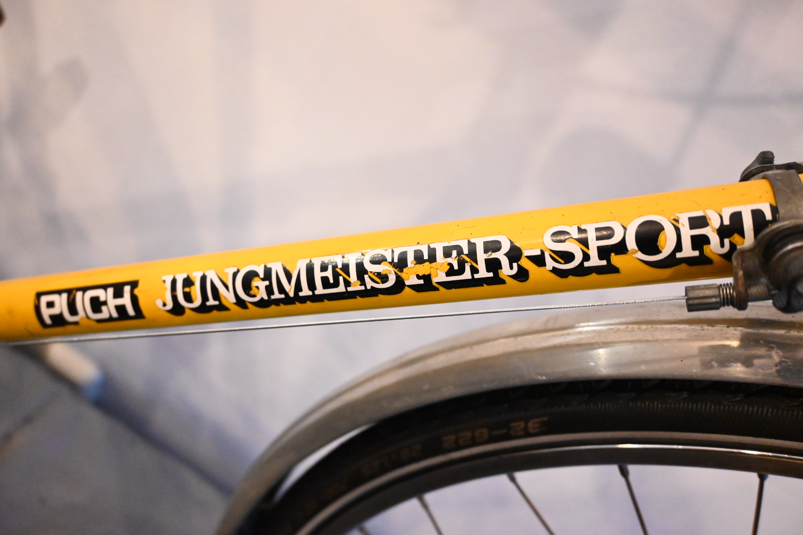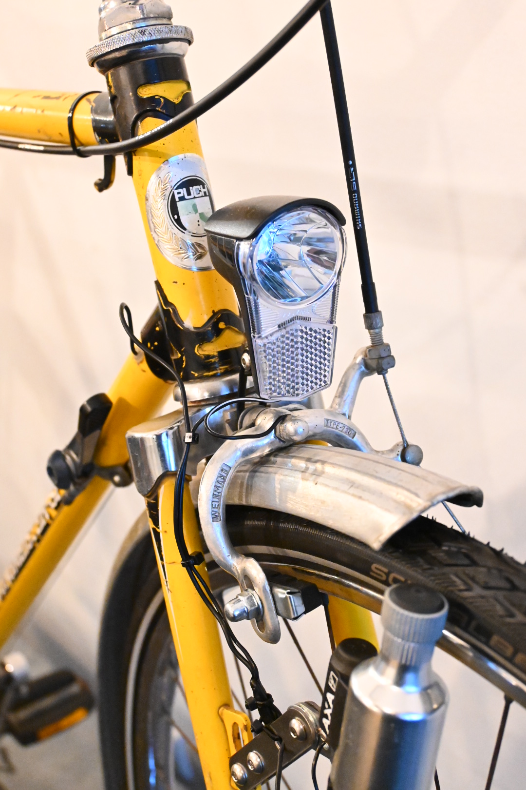 Aus alt… … mach alt, aber gut. Ser.Nr. 4829185Originalzustand war ein schwarzer, selbst bemalter Lenker mit Klingel und Shimano Bremshebeln. Der Vorbau war halb schwarz lackiert. Als neuer Vorbau kam ein originales Puch Bauteil zum Einsatz. Der Lenker wurde getauscht auf einen Rennrad 3ttt Super Competizione Lenker (auf Wunsch verkehrt montiert)… … mit Original Weinmann Bremshebeln inklusive Tausch der Bremsseile und Verrohrung dafür. An der Felge die Original Weinmann 730 Bremsen – Service und abgeschliffen (Lackflecken vom Lenker). Genauso wurde das Spritzblech komplett per Hand abgeschliffen. Ein neuer Dynamo im traditionellen Metallgehäuse bringt die Stromversorgung für Licht.Die Halterung des Dynamos wurde mangels fehlender Originalbauteile selbst den alten Halterungen nachempfunden. Dazu darf dann ein starkes Licht inklusive Reflektor nicht fehlen. Das Einziehen des Lichtkabels durch den Rahmen wurde ebenso durchgeführt – ein altes Kabel gab es nicht. Auch hinten wurde mit einer eigens gebauten Befestigung ein Rücklicht mit Standlicht aufgerüstet. Bei den Reifen war einiges zu tun. In stundenlanger Arbeit wurden die Original 28″ Rigida Felgen wiederhergestellt, geputzt und neue Schwalbe Marathon Mäntel aufgezogen. Das Felgenband wurde mittels einer Eigenkonstruktion stabil 3-lagig erneuert. Die Schaltung am unrestaurierten Rad bestand aus einem Simplex Schaltwerk auf 5 Durex Ritzeln, angesteuert durch einen Schalthebel am Rahmen. Umschalter war keiner vorhanden, aber schon zwei Ritzel am Tretlager. Bei der Simplex Schaltung war die obere Spannfeder gebrochen, weshalb die Kettenspannung nicht erreichbar war. Das machte einen Tausch auf ein baugleiches Schaltwerk notwendig. Aufgerüstet wurde ein Umschalter, Altus C20, mit eigenem Schalthebel. Die gesamte Kettenführung – Kette neu. Hinten auch Service der Bianchi Milano Super Rapid Bremse und Schleifen des Spritzbleches. … Es war mir eine Freude! ❤️