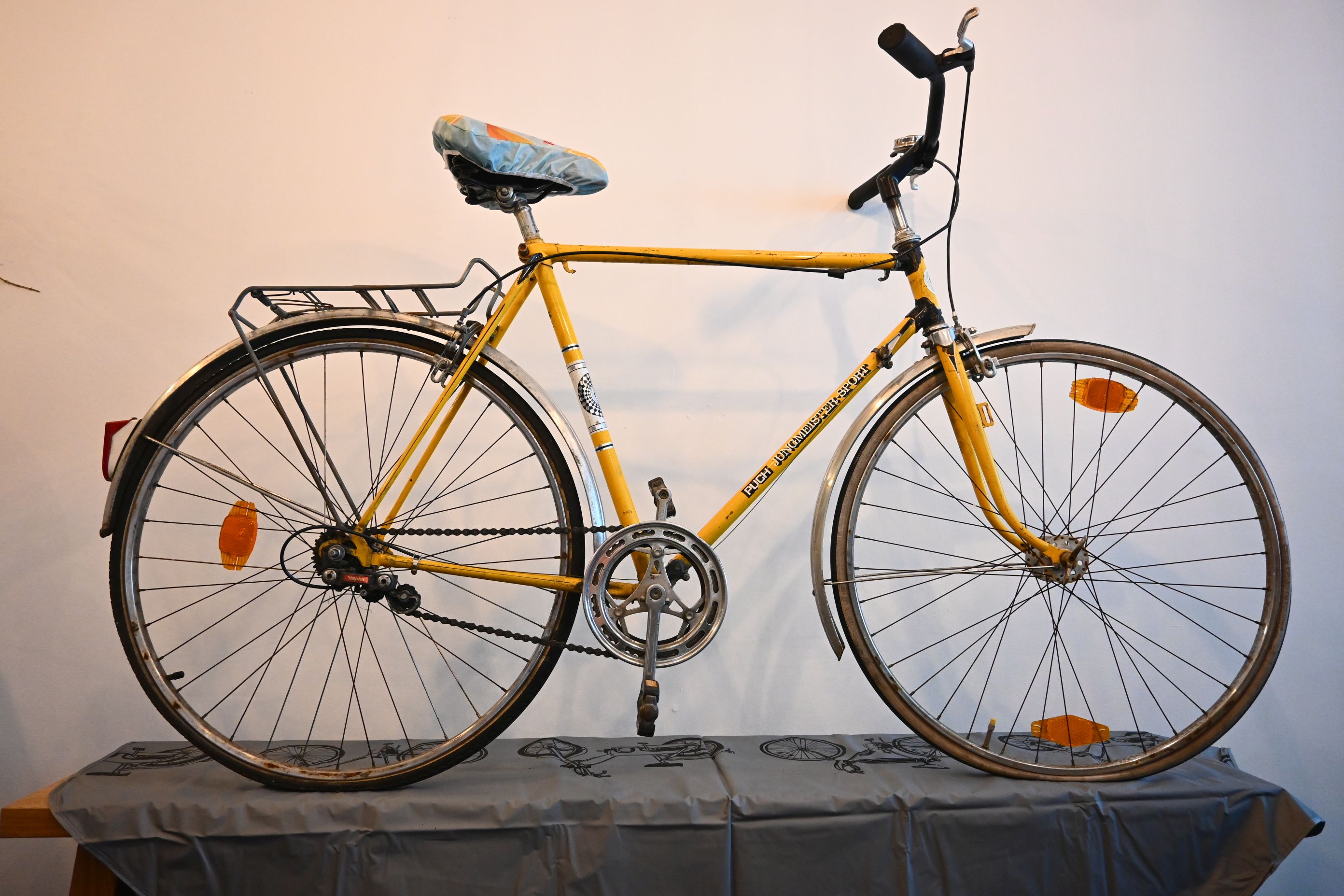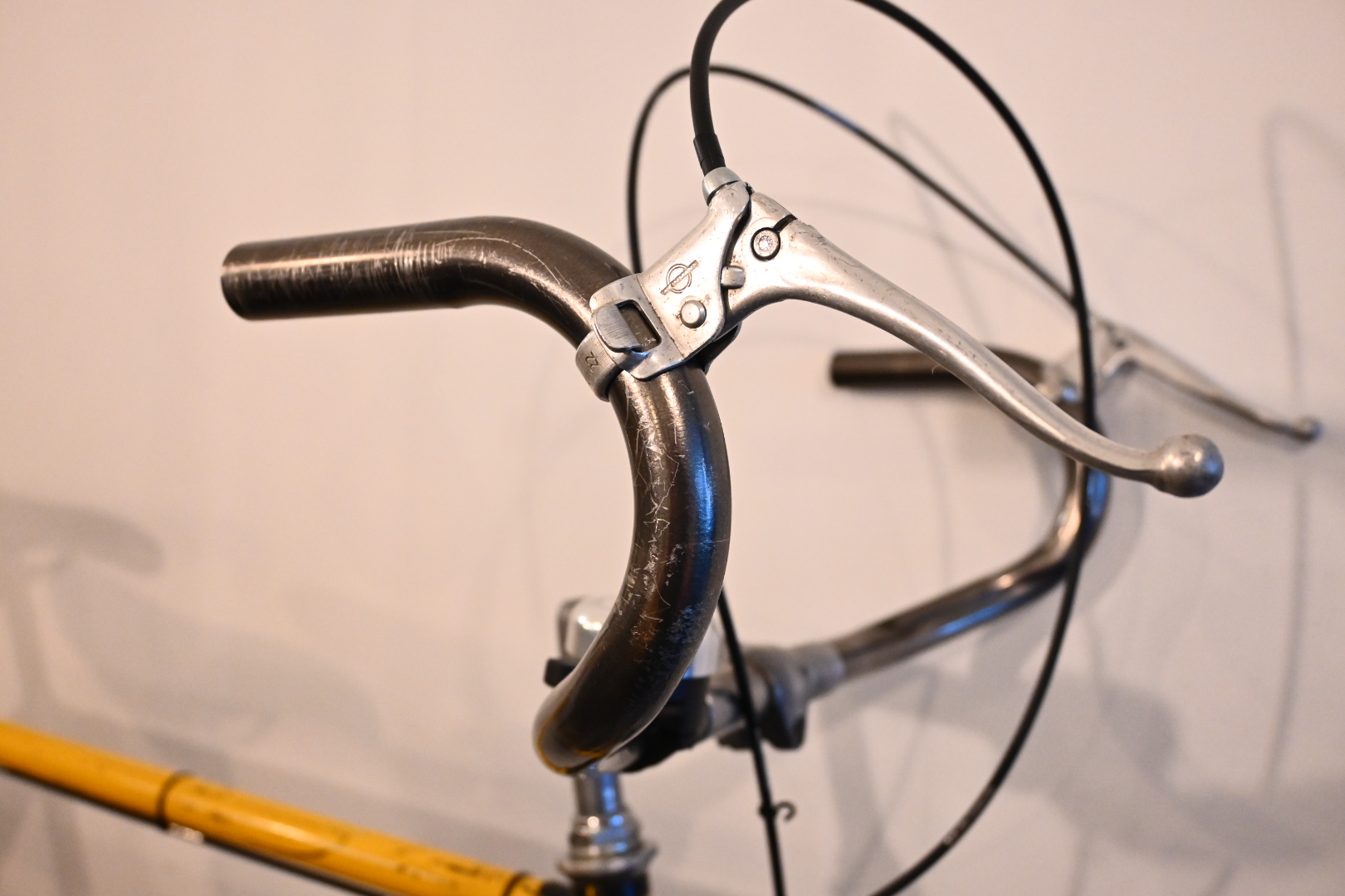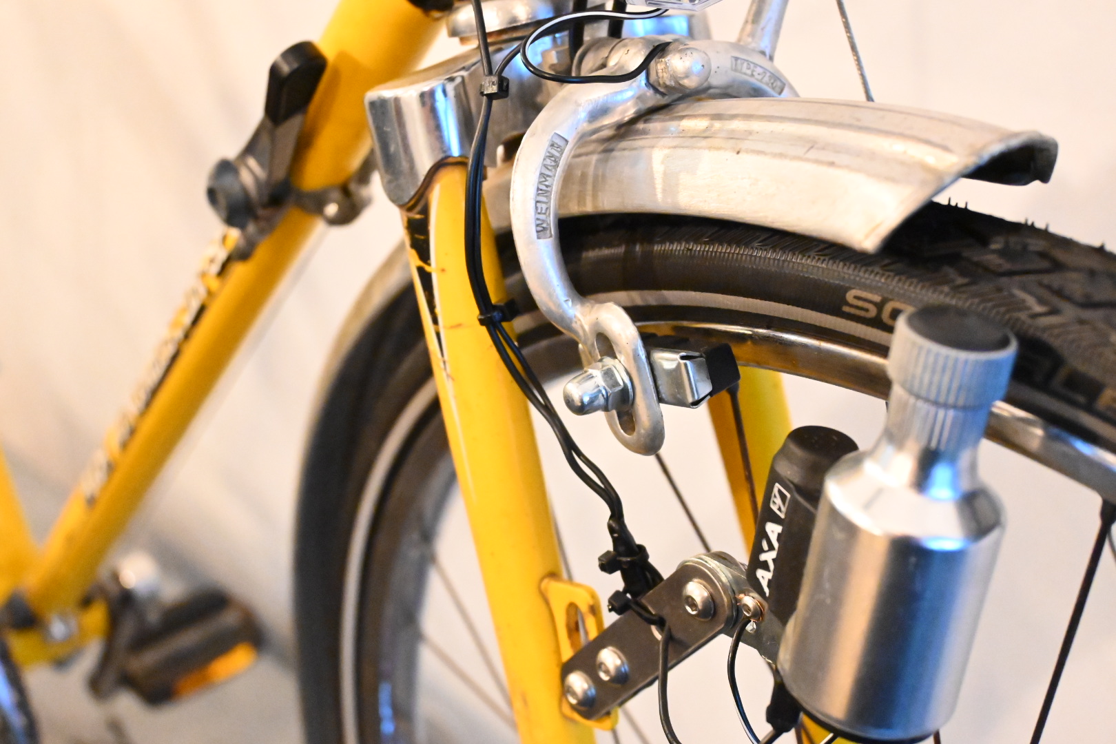 Aus alt… … mach alt, aber gut. Ser.Nr. 4829185Originalzustand war ein schwarzer, selbst bemalter Lenker mit Klingel und Shimano Bremshebeln. Der Vorbau war halb schwarz lackiert. Als neuer Vorbau kam ein originales Puch Bauteil zum Einsatz. Der Lenker wurde getauscht auf einen Rennrad 3ttt Super Competizione Lenker (auf Wunsch verkehrt montiert)… … mit Original Weinmann Bremshebeln inklusive Tausch der Bremsseile und Verrohrung dafür. An der Felge die Original Weinmann 730 Bremsen – Service und abgeschliffen (Lackflecken vom Lenker). Genauso wurde das Spritzblech komplett per Hand abgeschliffen. Ein neuer Dynamo im traditionellen Metallgehäuse bringt die Stromversorgung für Licht.Die Halterung des Dynamos wurde mangels fehlender Originalbauteile selbst den alten Halterungen nachempfunden. Dazu darf dann ein starkes Licht inklusive Reflektor nicht fehlen. Das Einziehen des Lichtkabels durch den Rahmen wurde ebenso durchgeführt – ein altes Kabel gab es nicht. Auch hinten wurde mit einer eigens gebauten Befestigung ein Rücklicht mit Standlicht aufgerüstet. Bei den Reifen war einiges zu tun. In stundenlanger Arbeit wurden die Original 28″ Rigida Felgen wiederhergestellt, geputzt und neue Schwalbe Marathon Mäntel aufgezogen. Das Felgenband wurde mittels einer Eigenkonstruktion stabil 3-lagig erneuert. Die Schaltung am unrestaurierten Rad bestand aus einem Simplex Schaltwerk auf 5 Durex Ritzeln, angesteuert durch einen Schalthebel am Rahmen. Umschalter war keiner vorhanden, aber schon zwei Ritzel am Tretlager. Bei der Simplex Schaltung war die obere Spannfeder gebrochen, weshalb die Kettenspannung nicht erreichbar war. Das machte einen Tausch auf ein baugleiches Schaltwerk notwendig. Aufgerüstet wurde ein Umschalter, Altus C20, mit eigenem Schalthebel. Die gesamte Kettenführung – Kette neu. Hinten auch Service der Bianchi Milano Super Rapid Bremse und Schleifen des Spritzbleches. … Es war mir eine Freude! ❤️