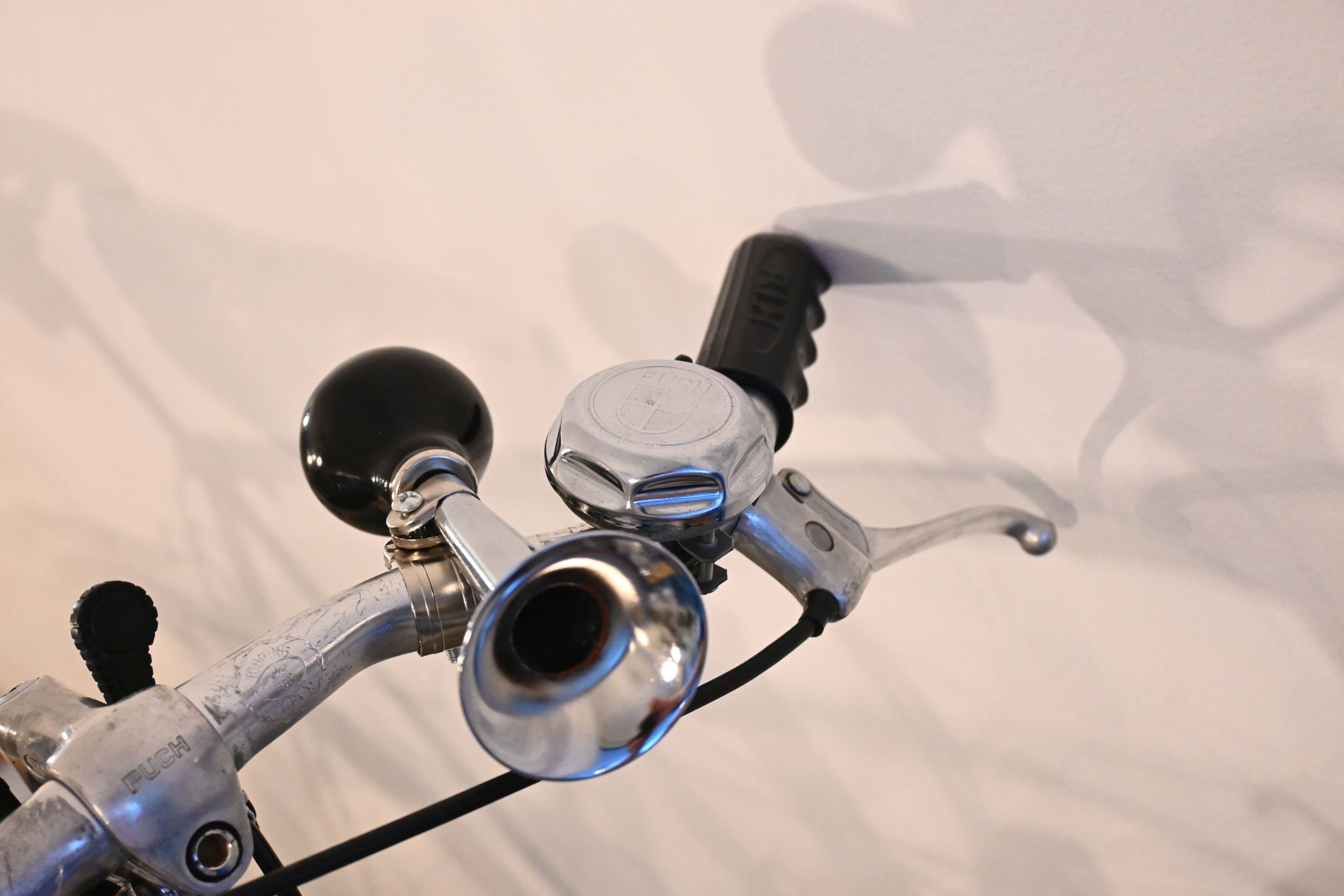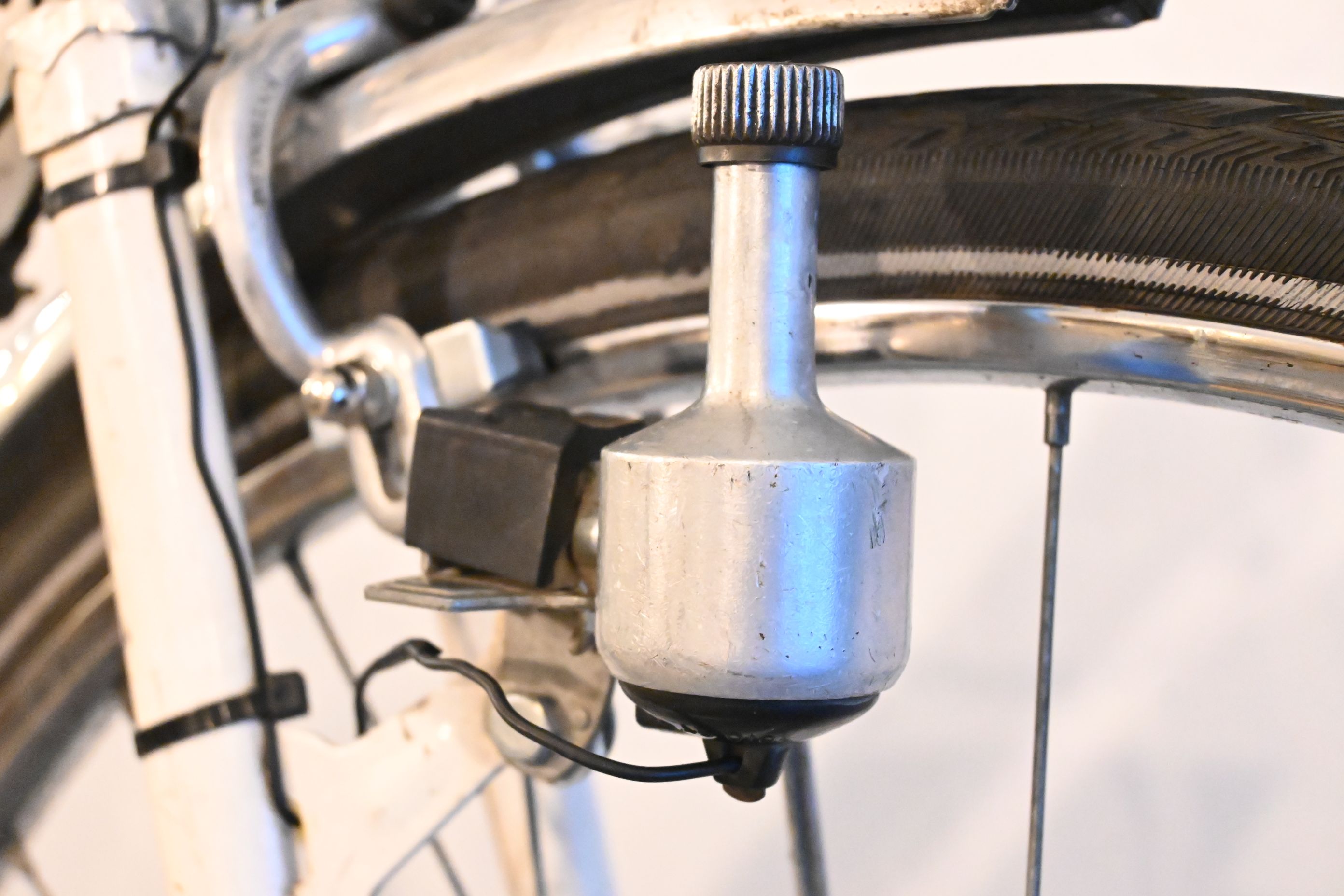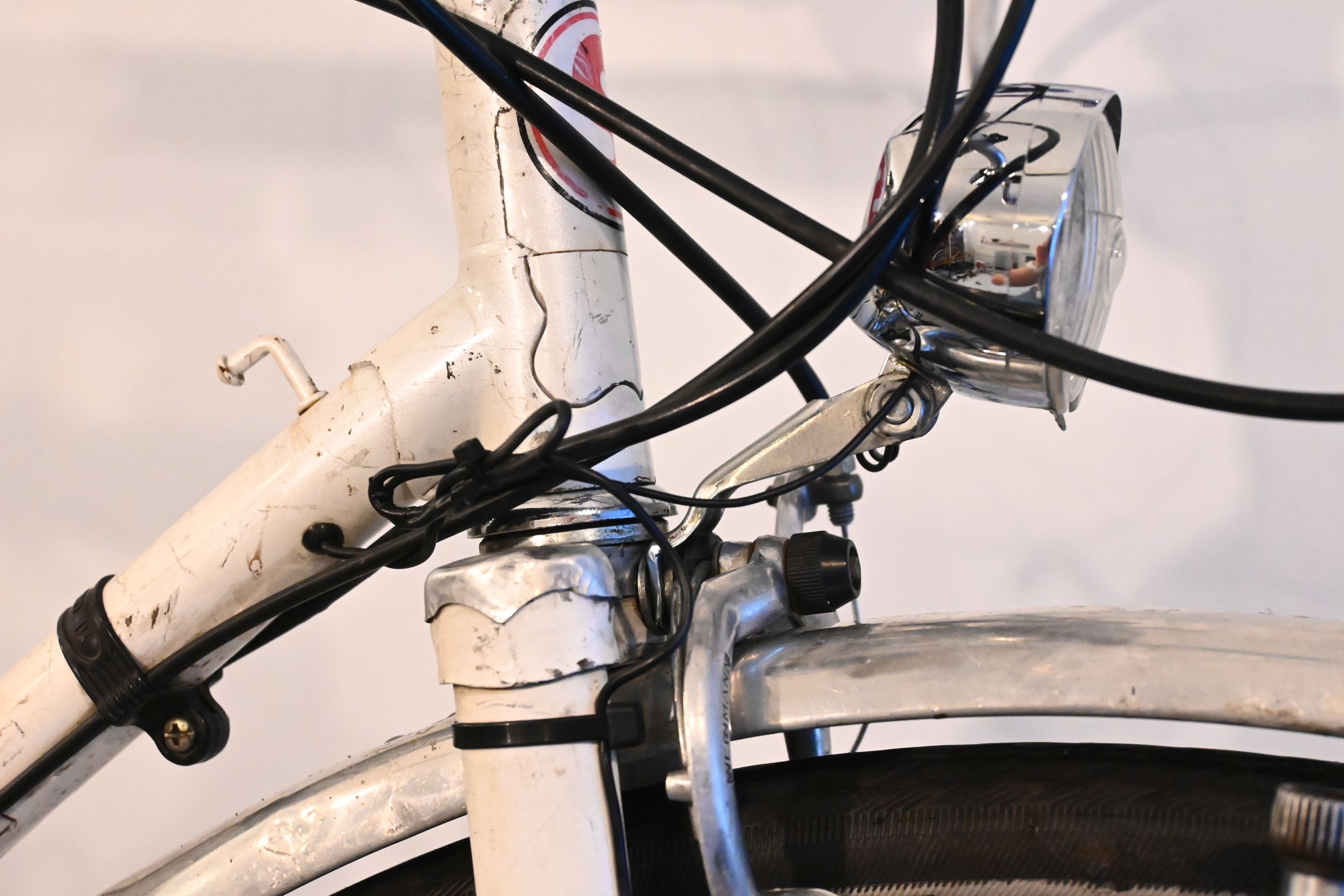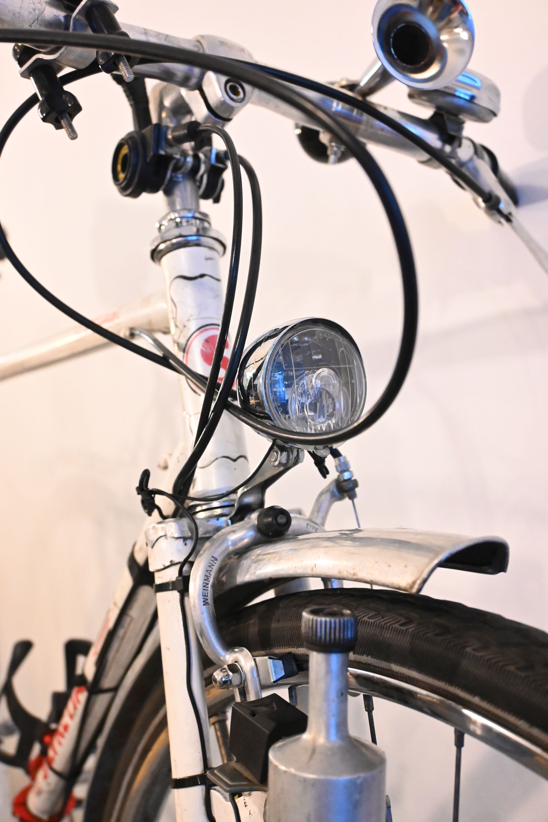 Silvretta Leichtlauf, Jahrgang unbekannt – 80er Jahre? Viele Puch / Weinmann Bauteile, aber auch italienische Teile verbaut. Positron Schaltung am Vorbau, Weinmann HufeisenbremsenDie Lampe schaut original aus, ich habe allerdings das LED – Modul meiner neuen Lampe ausgebaut und in das alte Gehäuse eingesetzt. Umwerfer Shimano PPS Positron FE 2 GängeSchaltung Shimano Positron FH, stufenlos mit steifem KabelWeinmann Type 81027,5″, Schwalbe Marathon.