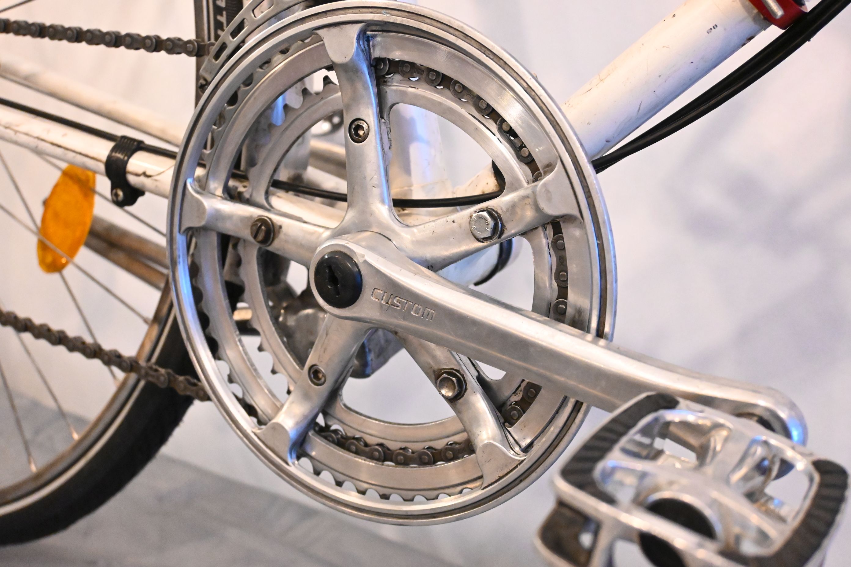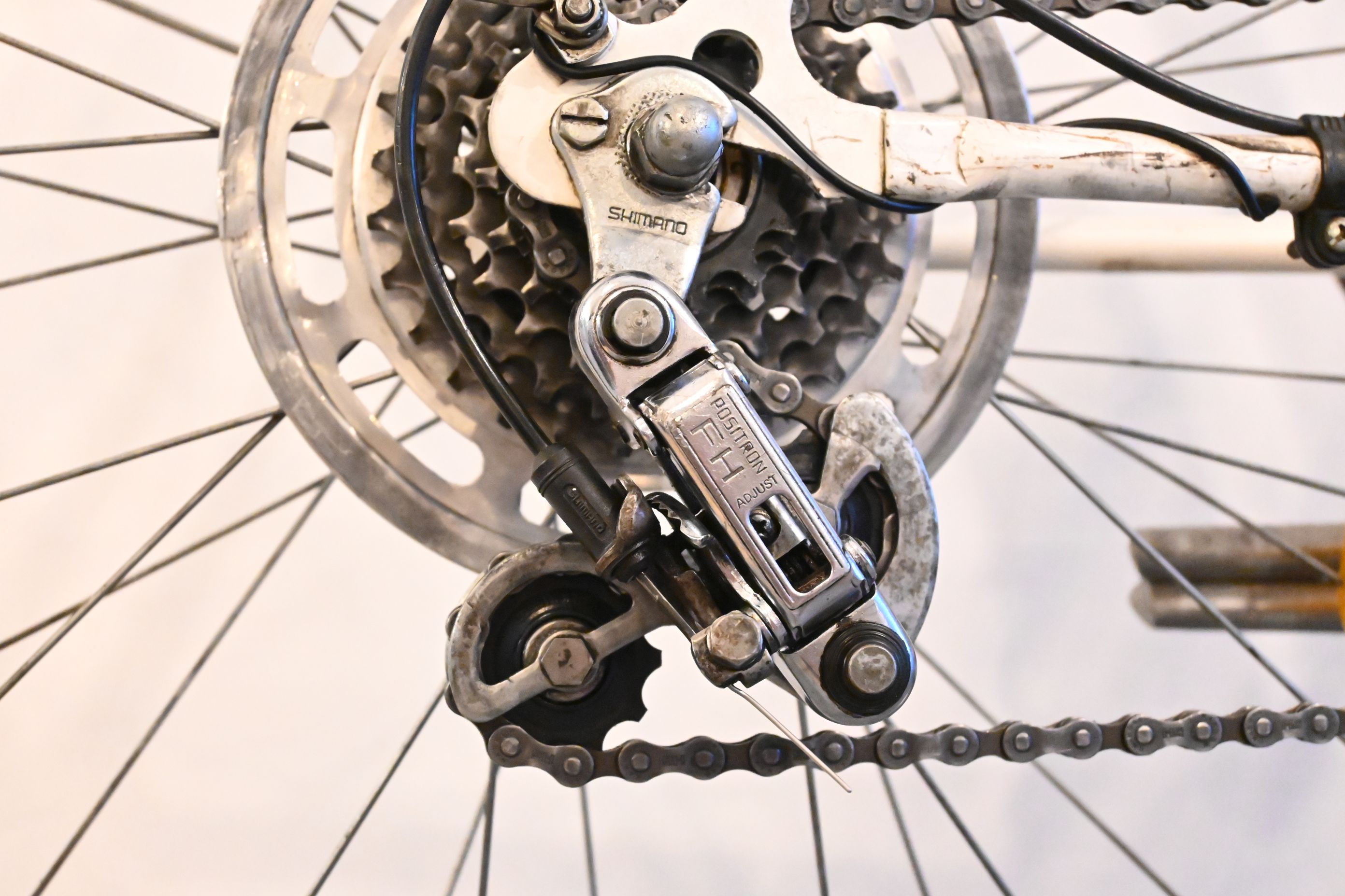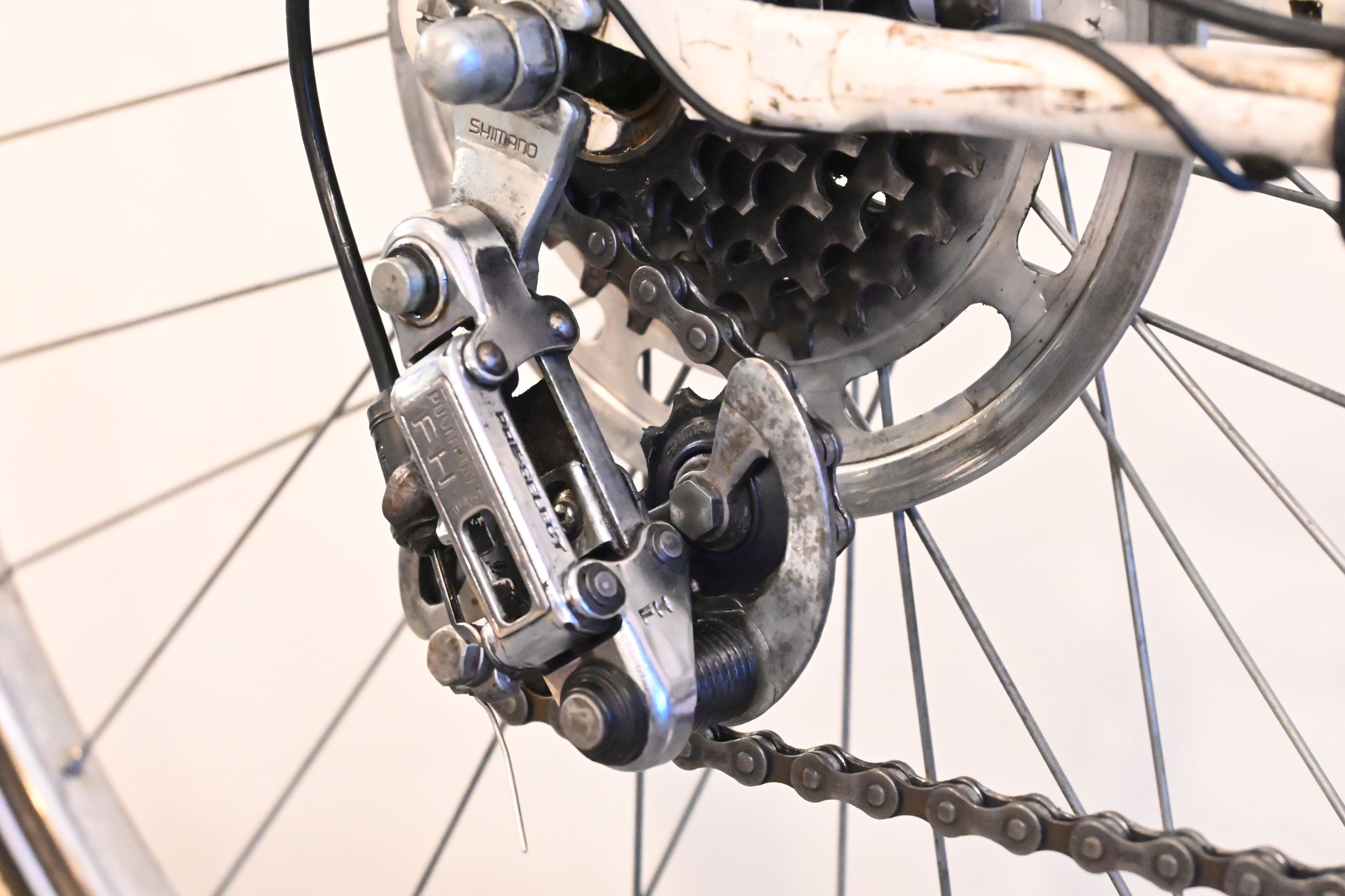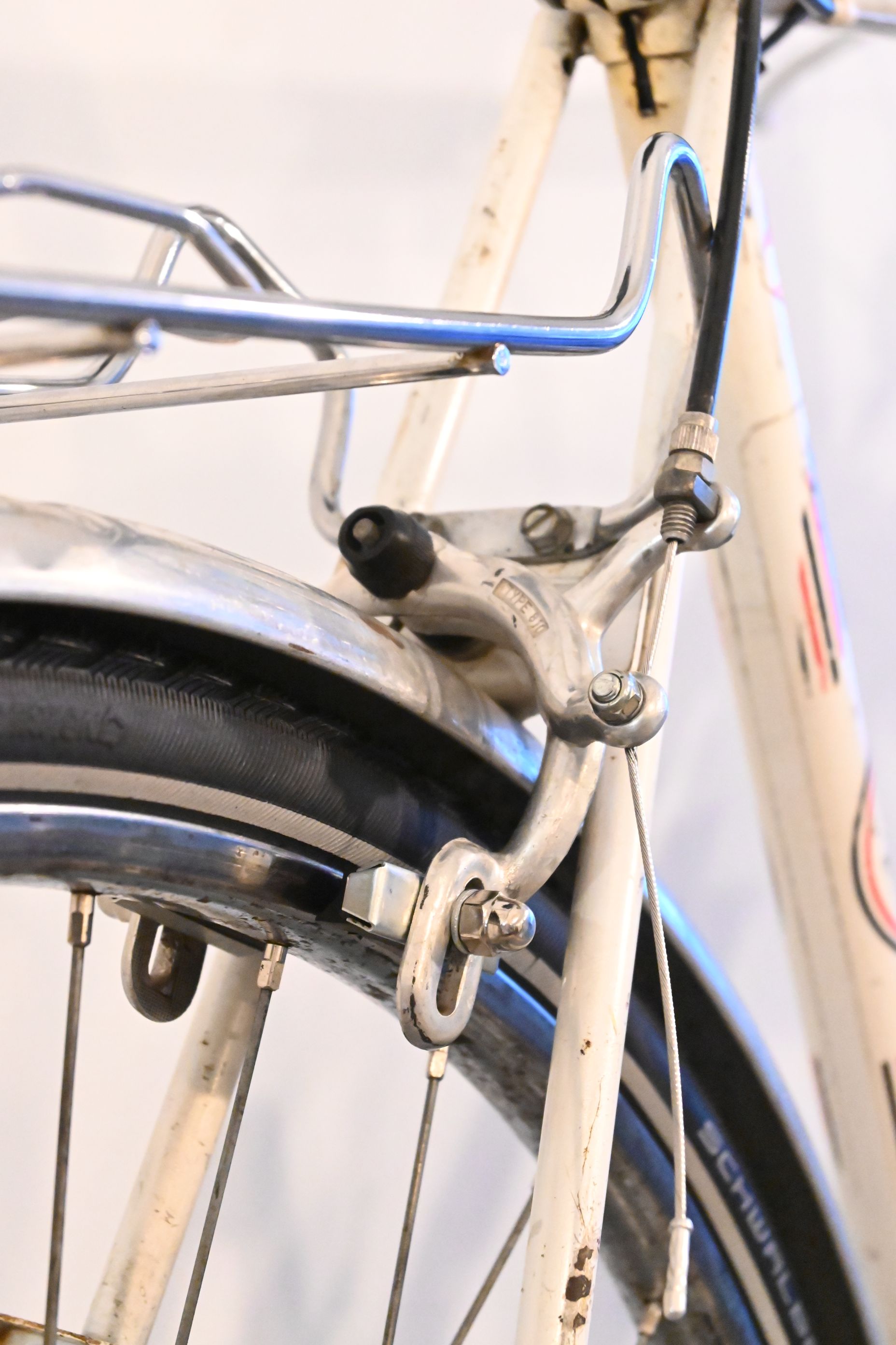 Silvretta Leichtlauf, Jahrgang unbekannt – 80er Jahre? Viele Puch / Weinmann Bauteile, aber auch italienische Teile verbaut. Positron Schaltung am Vorbau, Weinmann HufeisenbremsenDie Lampe schaut original aus, ich habe allerdings das LED – Modul meiner neuen Lampe ausgebaut und in das alte Gehäuse eingesetzt. Umwerfer Shimano PPS Positron FE 2 GängeSchaltung Shimano Positron FH, stufenlos mit steifem KabelWeinmann Type 81027,5″, Schwalbe Marathon.