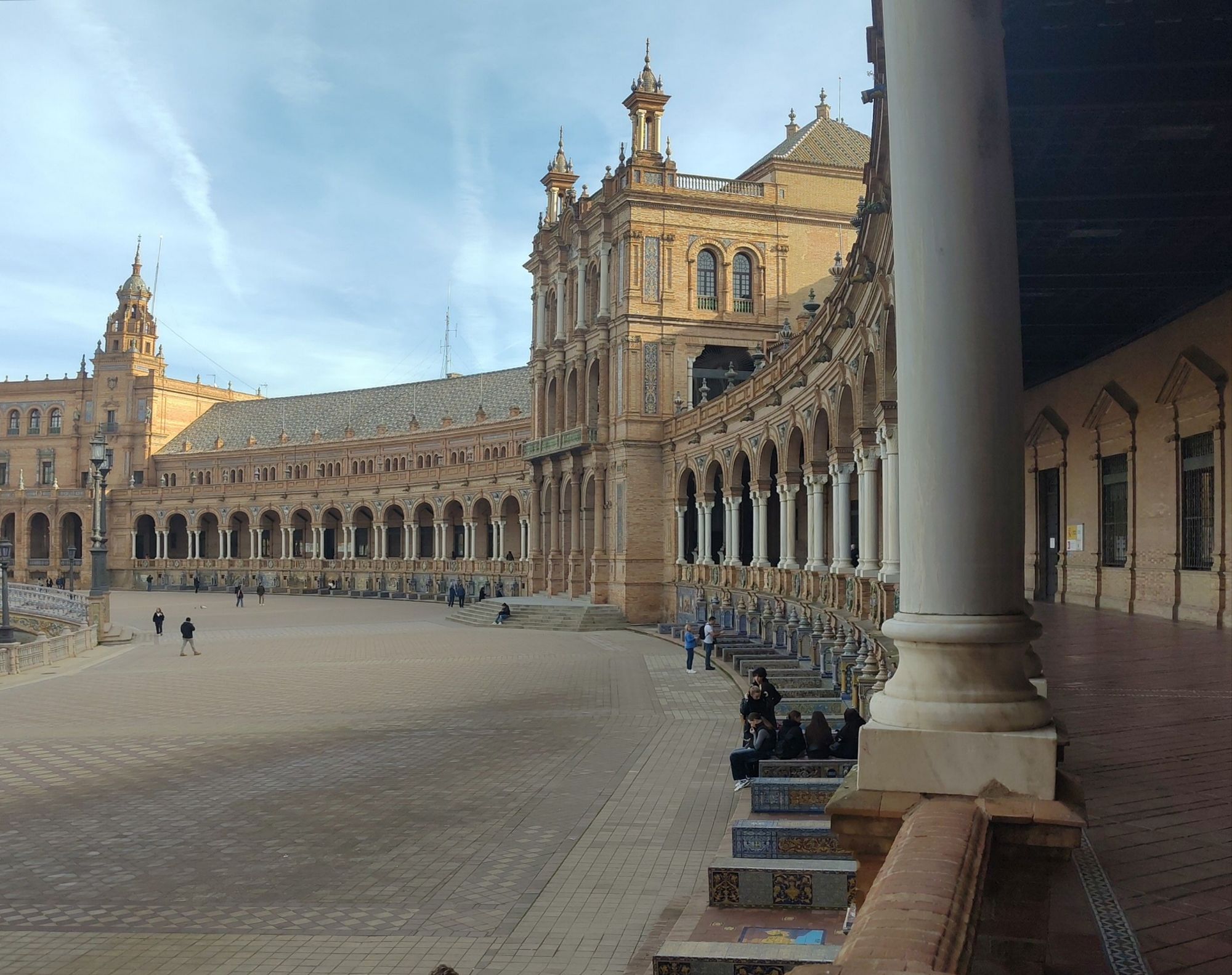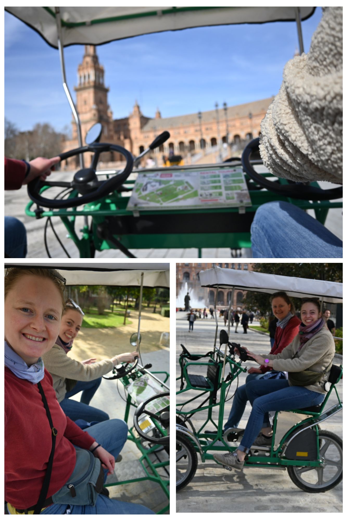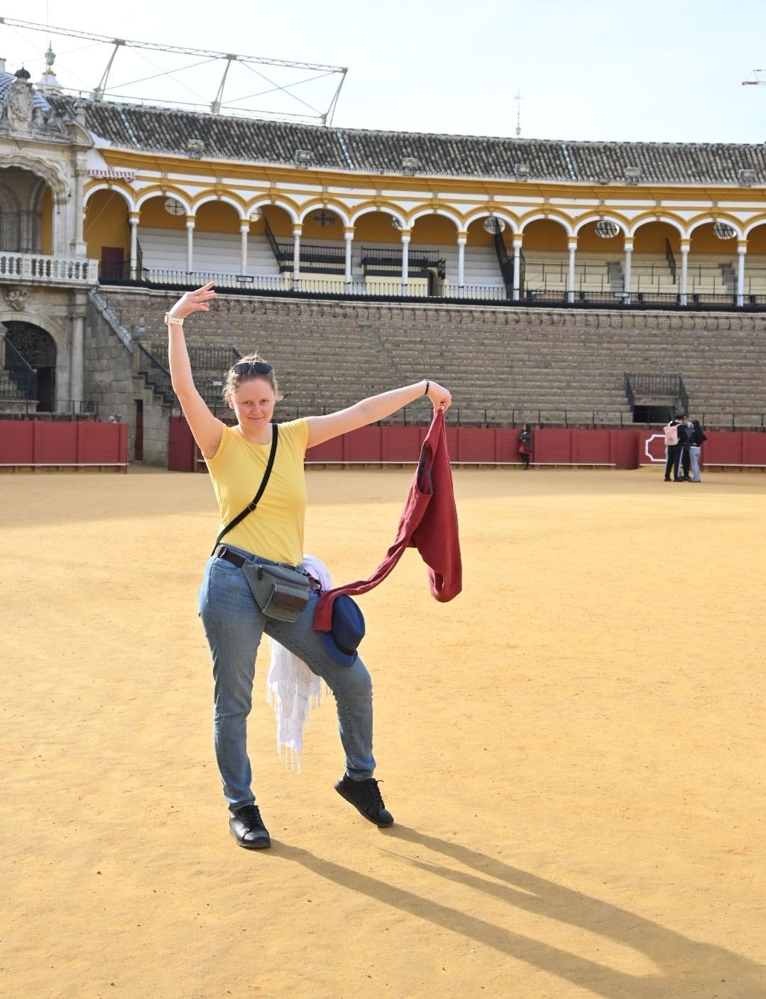 Der letzte wirklich wichtige Punkt auf der Sevilla Reise: der Plaza de España. Hurra, ein Fahrrad! Eine kleine, 3 stündige Stärkung in der Sonne lässt mich vergessen, dass morgen in Wien wieder halb so warme Temperaturen wie hier warten. In der Stierkampfarena Plaza de toros de la Real Maestranza de Caballería de Sevilla, in welcher heute noch Stierkämpfe ausgetragen werden, verwandle ich mich… … in einen Torrero… … – aber auch die andere Seite möchte ich sehen – und in einen Stier. Durch das Stadtviertel Triana, einer Wohngegend, gelangen wir… … zu einem nicht allzu schönen Park am Rande der Stadt.