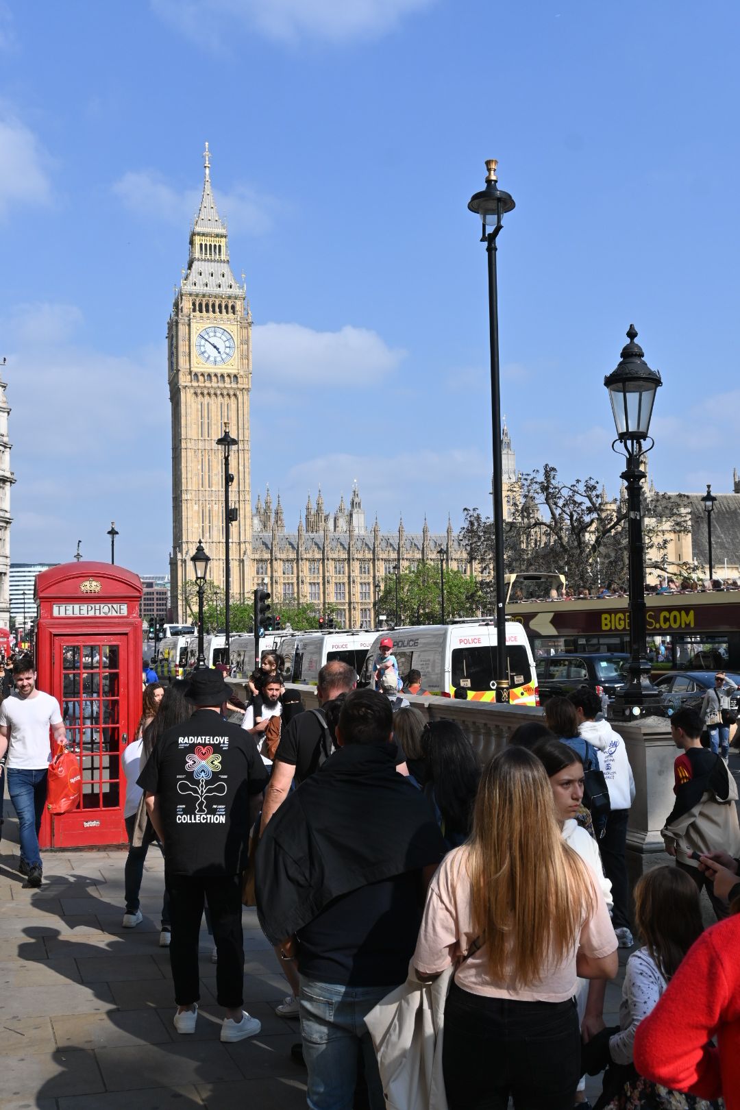 Wir warten lieber auf zwei Busse vor dem Elizabeth Tower, in welchem die Big Ben hängt – not so random at all!