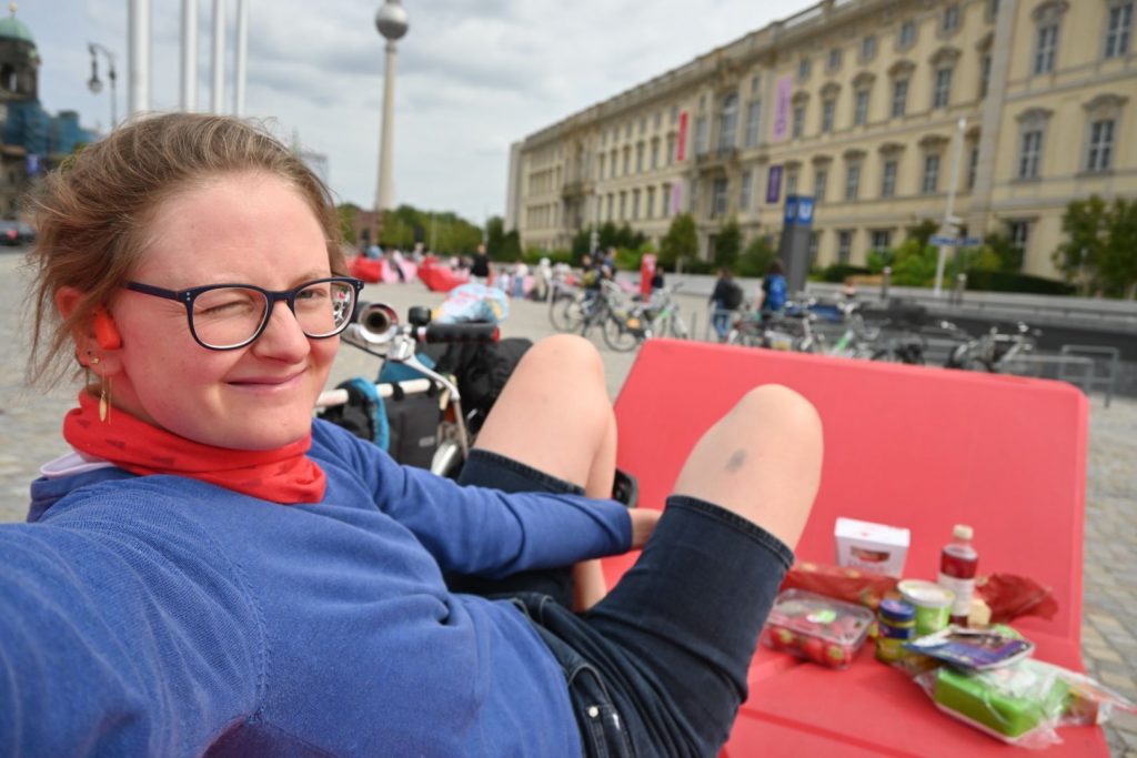 Berliner sprechen mich während meiner Pause auf mein Fahrrad mit Gepäck an – ob ich eine große Reise mache. Wir plaudern ein bisschen – das Pärchen geht, wie ich, morgen auf das Ärztekonzert und gibt mir Tipps, wie ich am Besten auf Fahrradwegen und mit der Fähre zum Wannsee komme. Voll lieb! Und Tschüssii!