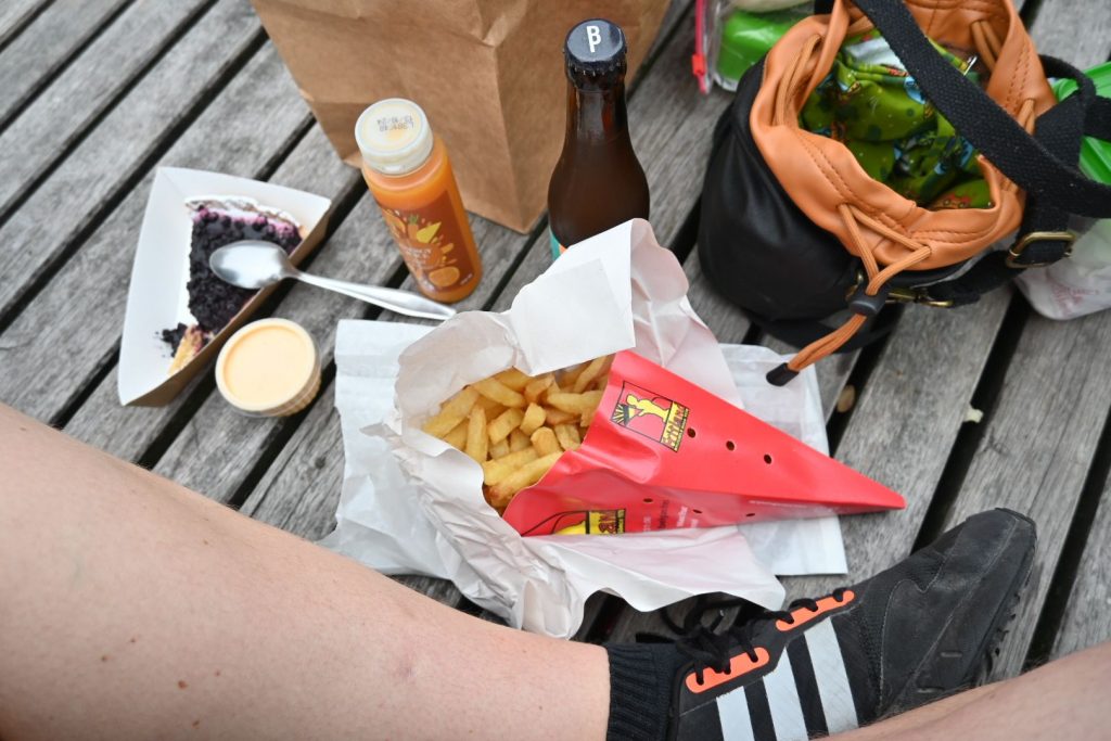 Zufällig, wie ich nachher erfahre, habe ich mir als Mittagessen bei einem der bekanntesten Pommesstände einen Snack geholt – sehr gut!