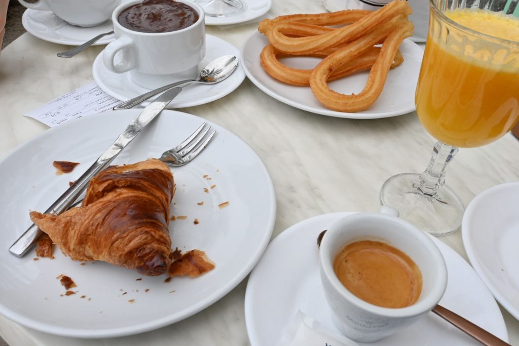 Gefunden! Croissant, Churros mit Schokoladensoße, frisch gepresster Orangensaft, Espresso!