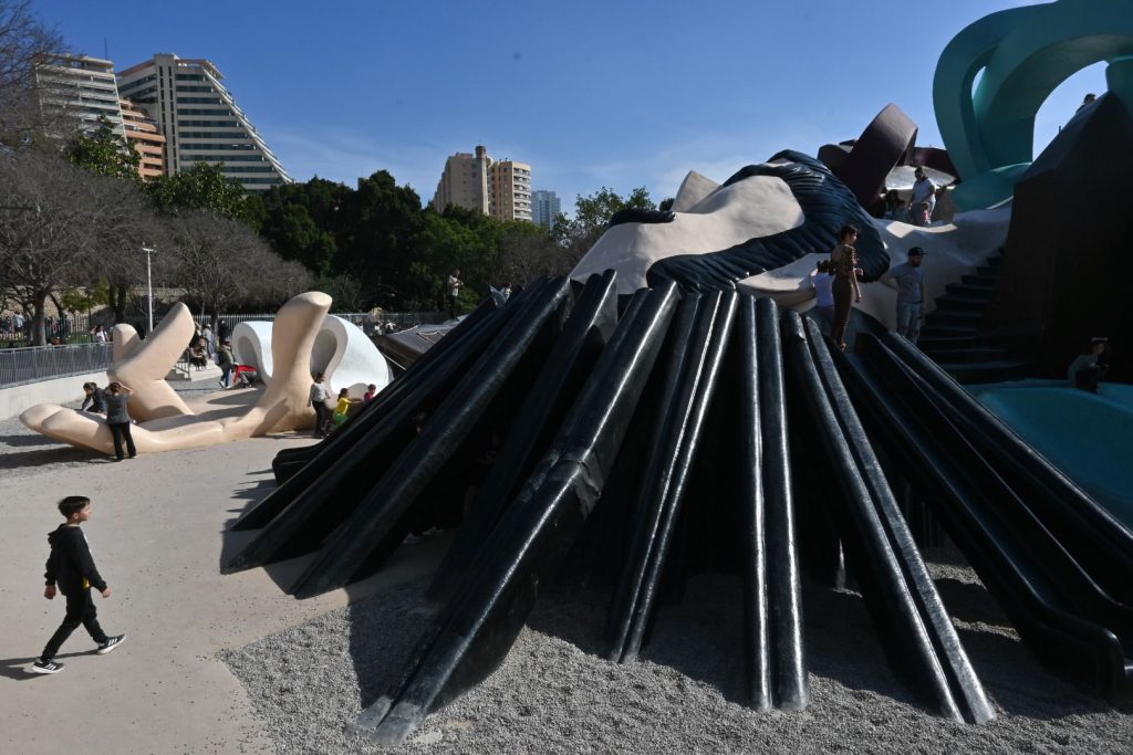Das Rathaus. Ein leider unbezwingbarer Turm (wir fanden keinen Eingang) Und schließlich sind wir beim Mercado de Colón, auch ein architektonisch sehr schöner Markt! Kurzer Stop im Park unter Palmen und 24°C (in Wien 0°C)Hier finden wir den wohl coolsten Kinderspielplatz ever. Der Riese Gulliver wurde hier in einer massiven Größe mitten in den Park gelegt, mit vielen Rutschen ausgestattet und kann nun von vielen kleinen Menschen bespielt werden. Vielleicht bin ich auch ein bisschen gerutscht?Seifenblasen Foto! Und nun machen wir uns auf den Weg zur Ciutat de les Arts i les Ciències. Here we are. And from now on I can’t stop it.