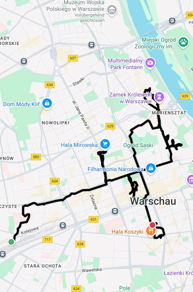 Nur eine Stunde später sind wir auch schon da!Ein kurzer Ausflug auf das Observation Deck, bissi Flieger schauen. Vom Bahnhof in Warschau erkennen wir schon die ersten Sehenswürdigkeiten. Bevor wir aber dorthin kommen, dürfen wir durch ein paar grüne Parks, wo wir auch ein gut sortiertes Krankenhausarchiv finden, zu unserer nächsten Station: Fahrradparkplatz!