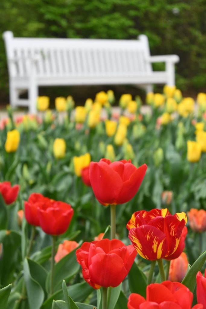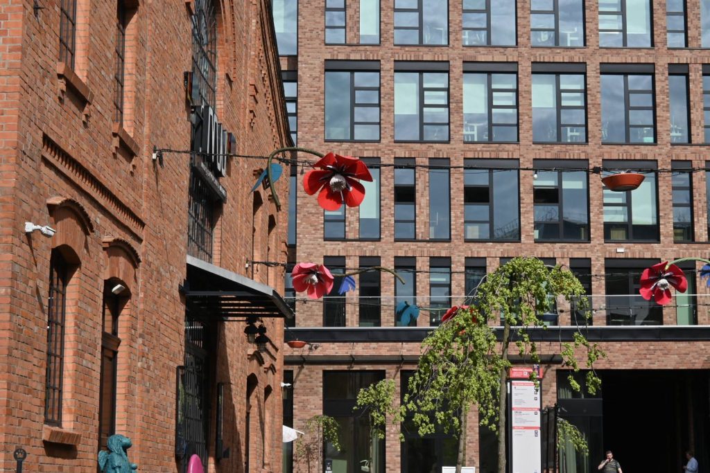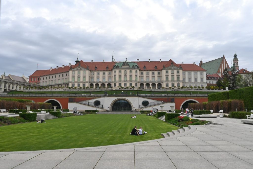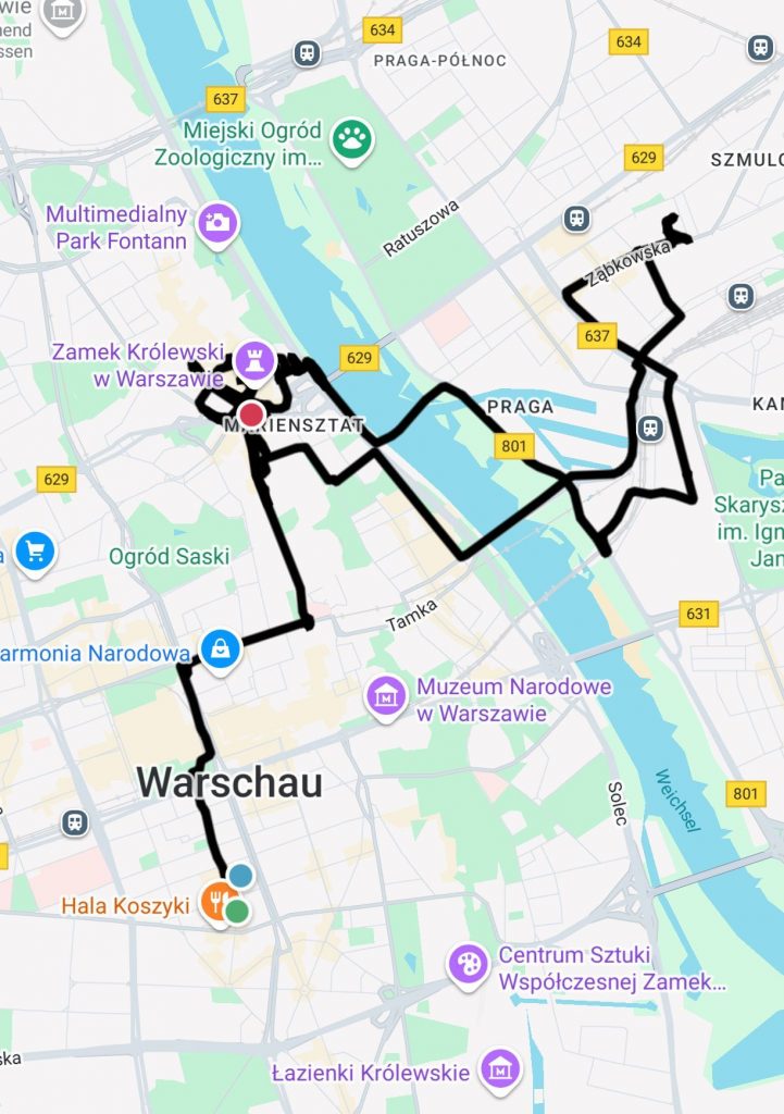 Hier ist ein fancy Büro- und Freizeitkomplex entstanden… … unter anderem mit unbeschreiblich coolen Fahrradständern mit Elementen aus alten Schiebern! Am Weg in die Stadt kommen wir beim Stadion Warschau vorbei. Hier wird gerade eine große Bühne für ein Freiluftkonzert aufgebaut – mit 5 grooooßen Autokränen! Brücke: Kładka pieszo-rowerowa im. Magdaleny AbakanowiczAm Königspalast entdecken wir die königlichen Gärten… … mit wunderschönen Tulpen! Im Gościniec Polsie Pierogi kosten wir uns durch die Speisekarte. Es gibt Pierogi in 9 verschiedenen Varianten und Borschtsch (Barszcz).
