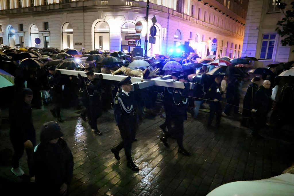 Es wird später, aber der Umzug taucht nicht in der Kathedrale auf. Wir machen uns auf die Suche. Hier? Oder dort? Oder da? Schließlich finden wir am Startpunkt eine polnische Bezeichnung für den Kreuzweg und können googeln. Aha! Da sind die also alle hin verschwunden! Wir gehen der Masse entgegen.