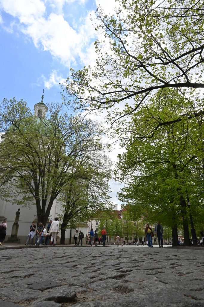 In der Altstadt angekommen entdecke ich ganz viele Leute mit gelben Papier-Narzissen an der Kleidung. Ich gehe auf ein Paar zu und frage nach: Heute war eine Gedenkversanstaltung für den Warschauer Ghetto – Aufstand 1943. Dort wurden als Symbol die gelben Blumen ausgegeben.