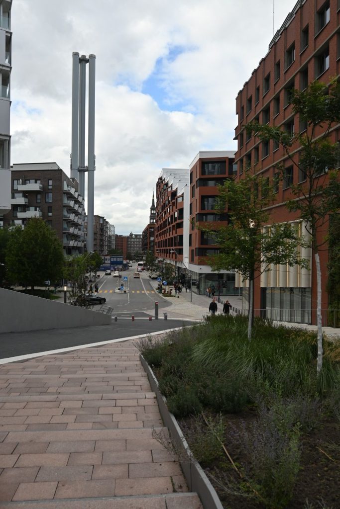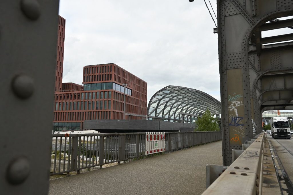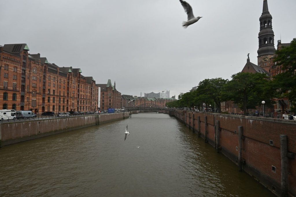 Dann regnet es mal wieder. Und kalt is auch. Trotzdem ab in die Innenstadt. Und zur neuen Hafenstadt. DAMN! Das hat sich ganz schön verändert seit 2022!Schon auch hier noch überall Kräne, aber natürlich an anderen Stellen.Der Bahnhof verwirrt mich ein bisschen. Total schön von der Struktur her; Eröffnet 2019 ist aber rundherum noch alles ein Provisorium. Der Zugang über eine Rampe ist ein mit BigPacks beschwertes Baugerüst,… … und hinter dem Bahnhof werden die Aushubhaufen von Pflanzen überwuchert und ein unbefestigter Parkplatz ziert den Bahnhofsvorplatz. Dahinter wird ein Gebäude in Form eines Dampfers gebaut. Skurril! Dieses Foto hab ich von 2022 gefunden! Sehen wir mal, was aus den eingepackten Gebäuden und Kränen geworden ist? Immer noch ein bisschen Baustelle, aber die Häuser dahinter sind fertig! In die andere Richtung gesehen, hier hat sich ein kleiner Park entwickelt. Zudem eine Aussichtsterrasse. Überraschung: Ein erfrischender Regenguss! Hamburg mit seinen Kontrasten: Hafen mit Kränen, viele Wasserstraßen, Kirchen im Hintergrund und die Elb – Philharmonie Elfie. Am Fischmarkt möchte ich mir noch etwas Gutes zum Essen holen. Bin ich hier richtig? Ähm. Es stinkt nach Fisch, ist das gut? HALLO? Hallo? hallo? (Echo?) DAS ist gut! Selten so glücklich im Regen. 25km in Hamburg.