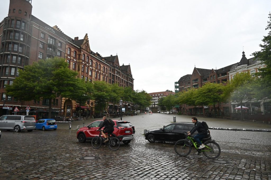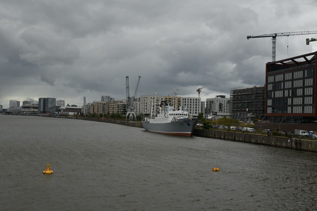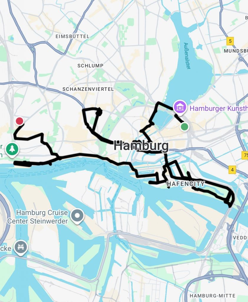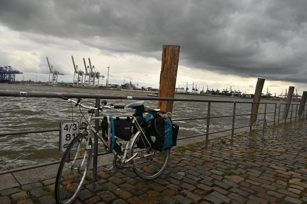 In Hamburg ist recht durchwachsenes Wetter, weshalb ich gleich mal durchgefroren und ein bisschen nass in einem Cafe lande. 1,5 Stunden regnet es nicht; ich wage den Schritt zu meinem Rad – und werde eingeschifft.