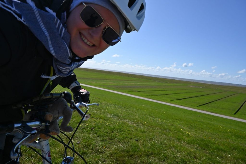 Und dann kommt das Meer auch immer näher! Hier bin ich also, am nördlichsten Punkt am Festland in Deutschland. Eine liebe Schwedin macht noch ein Erinnerungsfoto im windigen Watt. 🙂 Noch ein letzter Blick auf diese schöne Landschaft!
