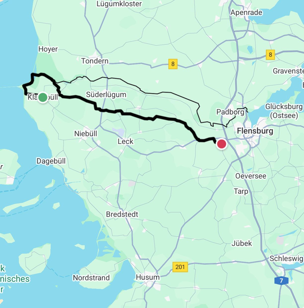 Dann geht’s 50km landeinwärts in Richtung Flensburg.