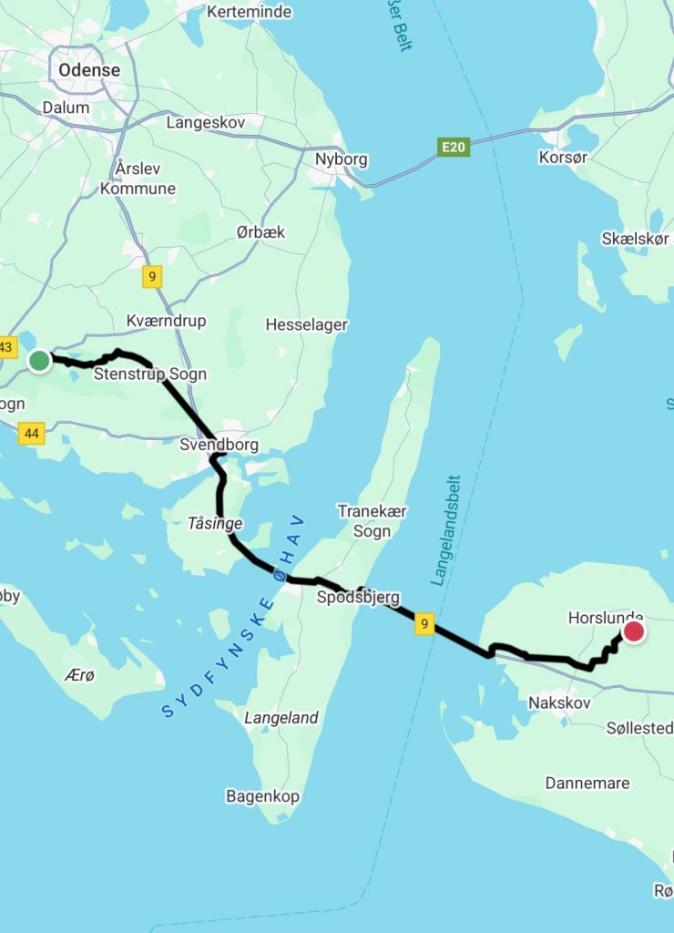 Von Svendborg fahre ich noch 30 km weiter zu einer Fähre, die mich über einen Meereskanal von der Insel Fünen auf die Insel Lolland bringt.