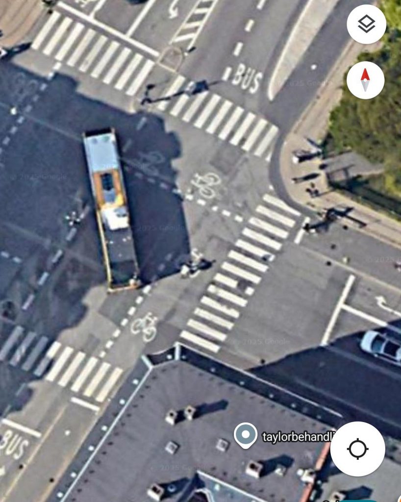 Die ganzen Tage hier hab ich noch nicht kapiert, wie man richtig links abbiegt in Kopenhagen. Von unten kommend als Fahrradfahrer bleibt mir eig nichts anderes übrig, als mich auf den rechten Zebrastreifen zu stellen. Der von rechts kommende Fahrradweg ist befestigt und wenn ich mich vor den Zebrastreifen stelle, hupen mich Rechtsanbieger an.